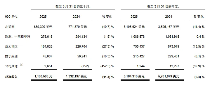 以2024財年為例,其佔集團營收70%以上的美洲市場增長乏力,低至4%;增長最強勁的張國大陸市場年度增速41%,但具體呈波動下滑態勢。