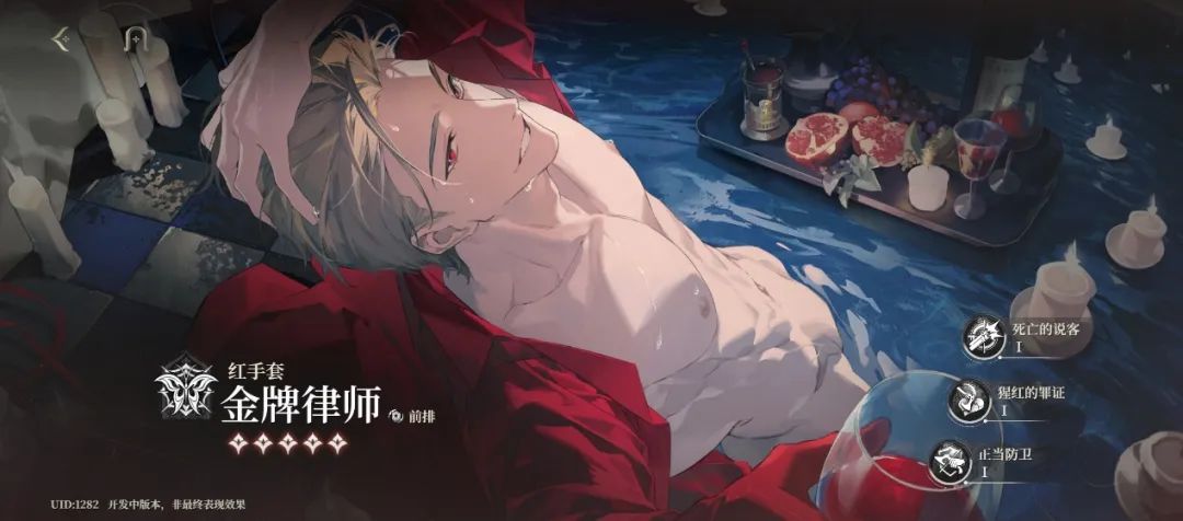 從遊戲中,玩家也能看出這種“萬花筒”式的羣像敍事取向。比如金牌律師“紅手套”,外形設計和行為氣質都帶着強烈的危險感:一身紅衣、詭笑張揚,像是從某種中世紀劇場裏走出來的反派情人,但與此同時,個性展示上卻又是……