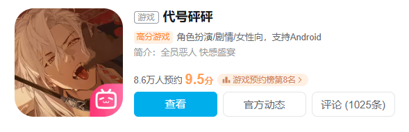 在B站和TapTap上,靠着這樣“危險”的氣質,《代號砰砰》也拉滿了初始關注值,成為近期開測前期待值最高的女性向新遊之一。