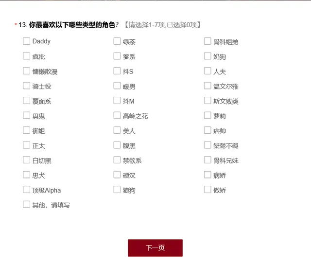 相比“家族復興”和“復仇大業”的敍事正餐,和不同角色之間的曖昧互動不過是穿插期間的不同甜點。“在既得利益者的眼中,所有威脅自身地位的人事物,都是毒瘤。”比起Boy meets girl的角色模板,更多從題材設定到角色塑造,從文本尺度到敍事風格,撲面而來的都是“不按常理出牌”。 畢竟,在之前遊戲首測招募問卷裏的玩家喜好調查選項,幾乎就已經就挑明瞭遊戲的“女本位”定位——掌握權力和力量的主角,才是“保護”和“挑選”的那方。