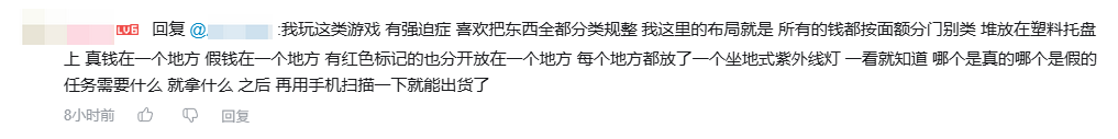 遊戲後期玩家們還能對髒污的鈔票進行清洗、烘乾,不用的垃圾也有焚燒爐處理。雖然環節越來越多,但是將所有東西都規整一新後的成就感也是無可比擬的。一些玩家表示自己像是把遊戲玩成了“家政模擬器”。