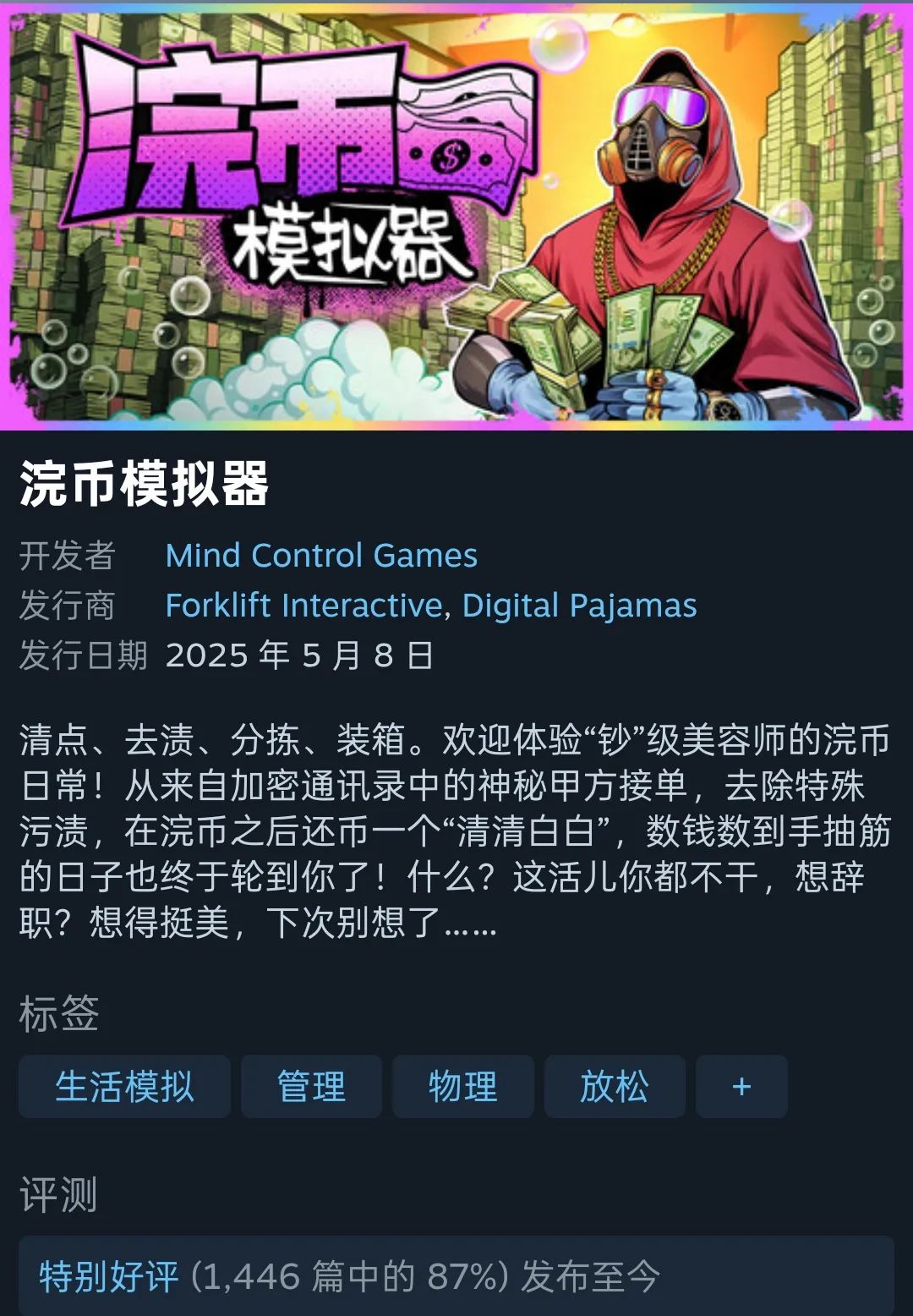 但近期發售的獨立遊戲《浣幣模擬器》,還真就是這麼一款滿足玩家“數錢幻想”的遊戲。