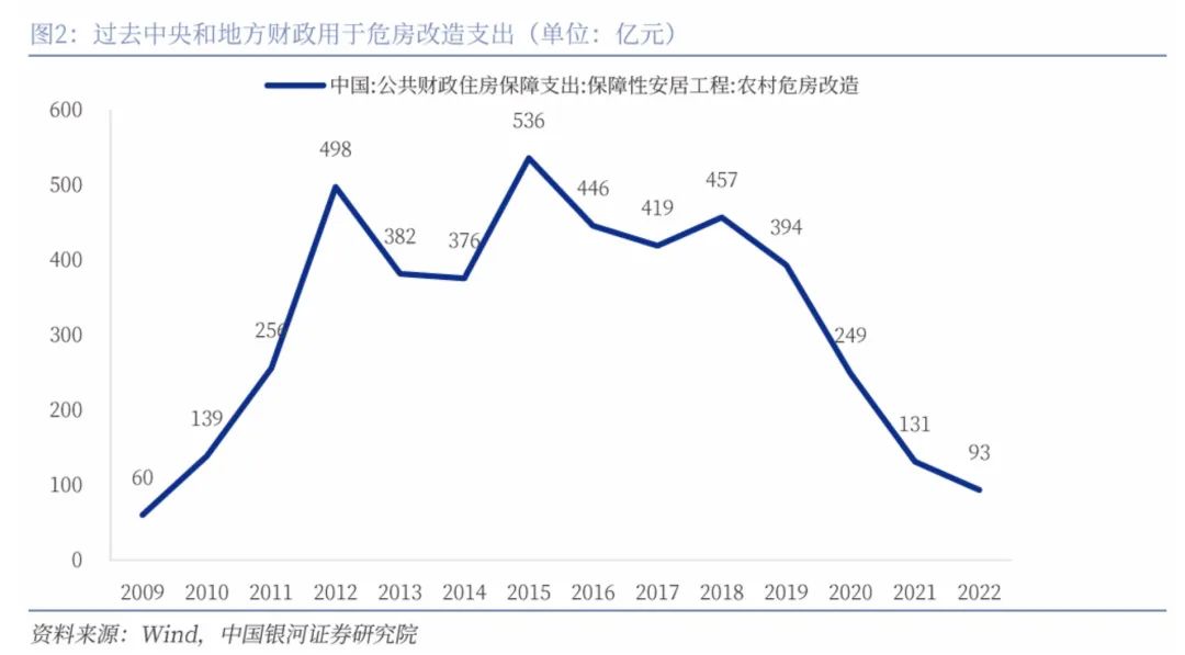 △過去中央和地方財政用於危房改造的金額,圖源:銀河證券研究院