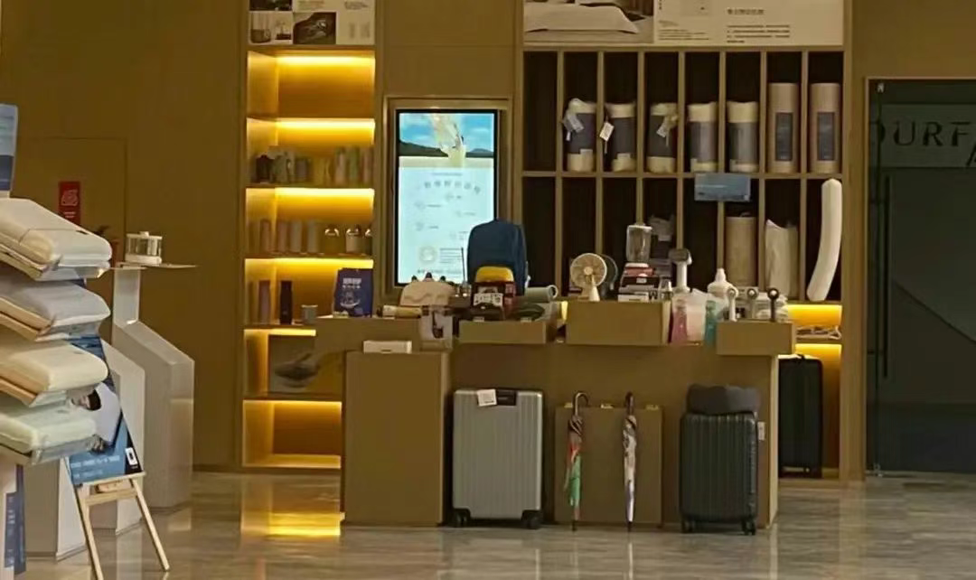 從進門的那一瞬間,你在亞朵酒店用的大部分東西,像枕頭、牀墊、洗髮水都能買。