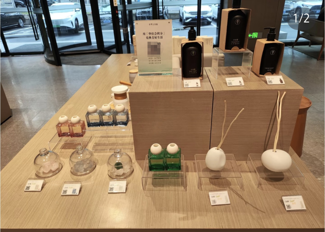 全季的三件套是茶葉、香薰和枕頭。沒錯,華住現在也開始賣枕頭了。