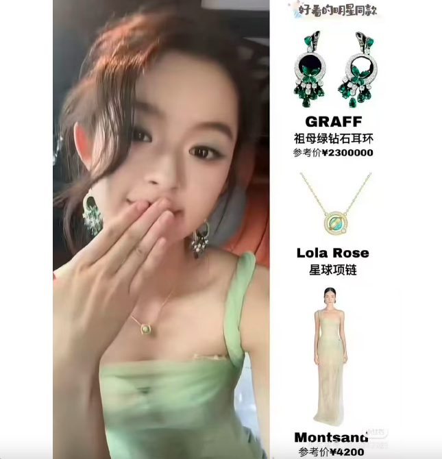 估計她也是沒有想到,正是這一副耳環引起了軒然大波。照片中,黃楊鈿甜佩戴的耳環被指認是奢侈品牌GRAFF經典系列,價格不菲,有網友宣稱這對耳環有價無市,價格在230萬人民幣左右。之後有記者證實,目前在GRAFF網絡旗艦店內並無該款耳環的報價,但在二手交易網站上,該款耳環二手價超過100萬元。
