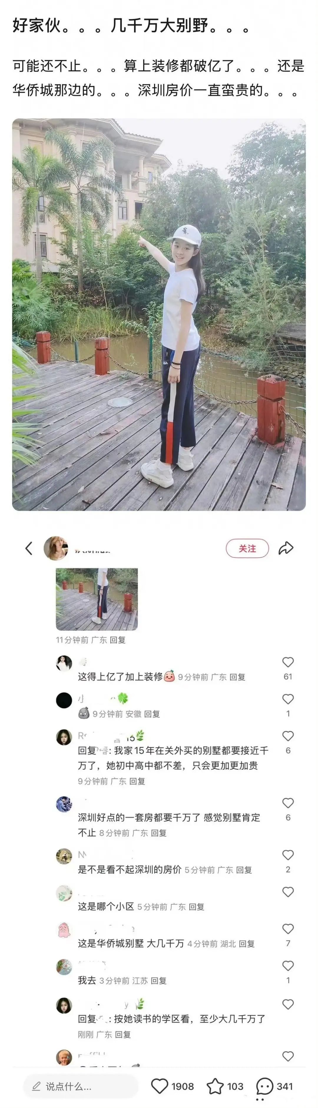 縱觀黃小姐和其母親的博文,可以發現她家的富有程度超乎尋常人的想象。黃小姐11歲的時候,黃母在曬圖中無意曝光了自己的卡地亞滿天星手鐲,如今這個手鐲要價在45萬左右。而黃小姐無意中曬出位於深圳的別墅,被當地人證實價值過億。