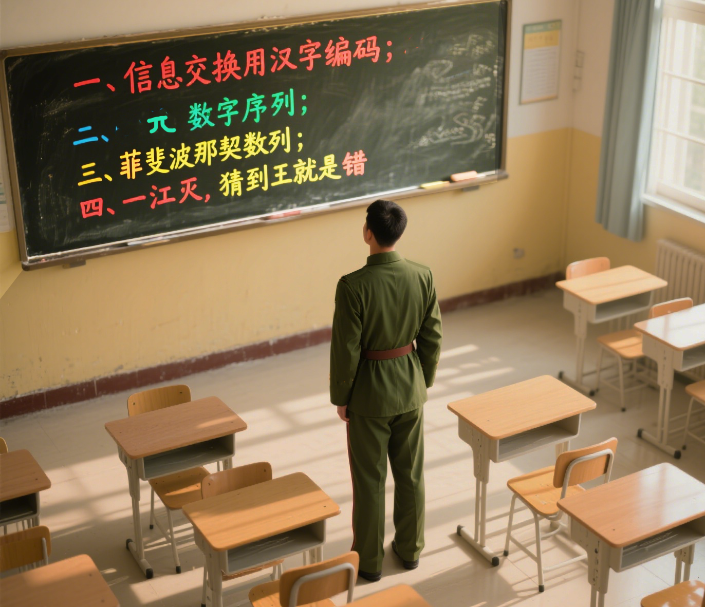 參謀長和悦了,一邊他踱步一邊教育我:“解放軍是一所革命大學校,而軍事科學是獨立於其他科學之外的最綜合的科學……” 這些日子,“回家考大學”的念頭讓我如同落進盤絲洞,滾來滾去滾不出來,參謀長今天的教導讓我徹悟了他的良苦用心。