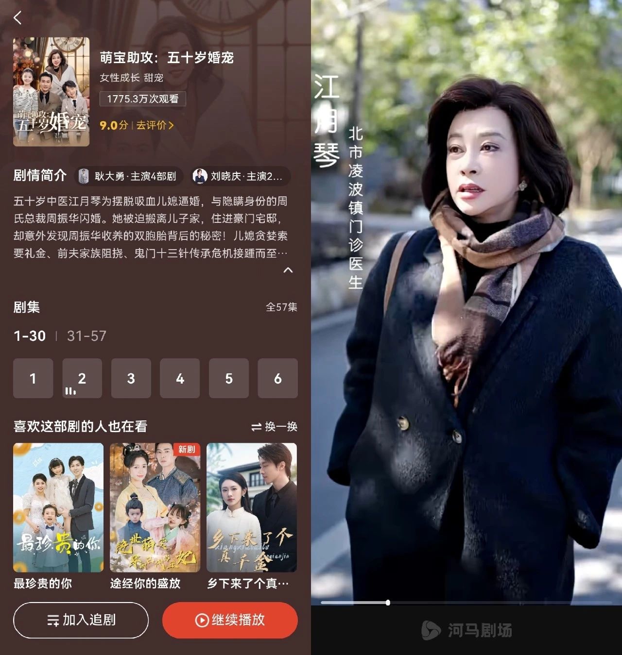 另一邊的河馬劇場,近期引起話題只在於劉曉慶下場主演短劇《萌寶助攻:五十歲婚寵》,絕對爆款的缺失讓大眾無法進一步記住河馬劇場的存在。