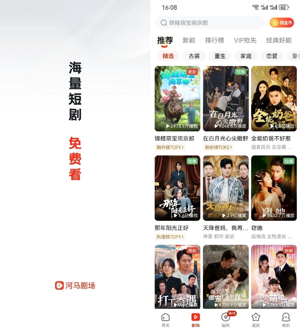 紅果短劇已上線短劇超過1.5萬部,並每月保持上千部的上新速度,內容供給充足而多元。相比之下,河馬劇場雖然擁有點眾科技的優質版權資源作為IP基礎,但在內容的數量和更新速度上仍有明顯差距。