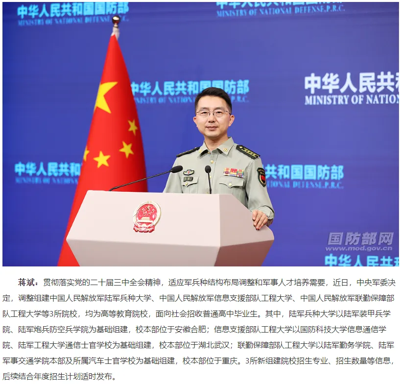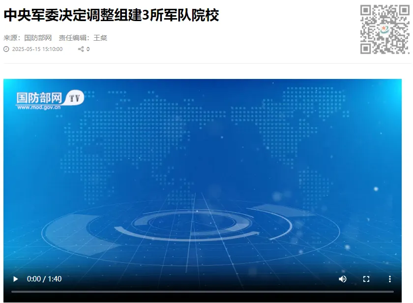 而今年的5月15日,“中國軍網”公佈了一則《中央軍委決定調整組建3所軍隊院校》的新聞,具體情況如下: