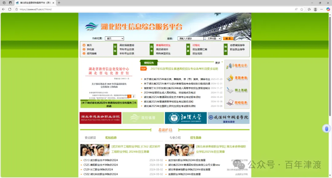 第三個就是一些招生信息綜合服務平台,譬如湖北省招生信息綜合服務平台長這樣(網站鏈接:https://zsxxw.e21.cn/e21html/)