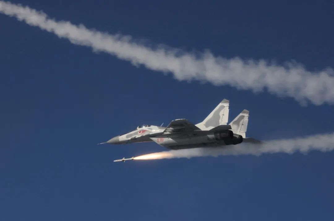最詭異的是,朝鮮人民軍的米格-29,好像還真的把這恩情-120/12給掛在掛架上,發射出去了。其後朝中社刊發的照片顯示,米格-29在金正恩同志視察、在空中進行打靶演示時,真的發射了空對空導彈,其中至少一款中距彈,但是這款實際發射的中距彈跟展示出來的恩情-12/120又有些差別。恩情-12/120採用鴨式佈局,彈體前翼比較小,尾翼比較大,而米格-29實際發射的中距彈,似乎採用的是正常式佈局,彈體前翼比較大,尾翼比較小。