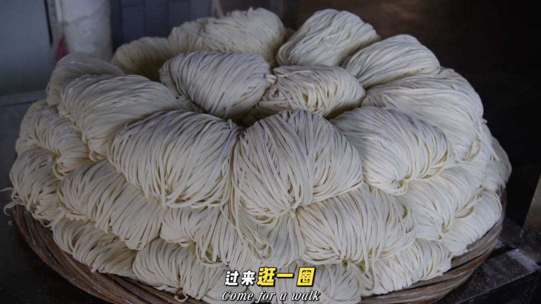○ 一團團晾曬好還帶着韌性的面薄買不到;