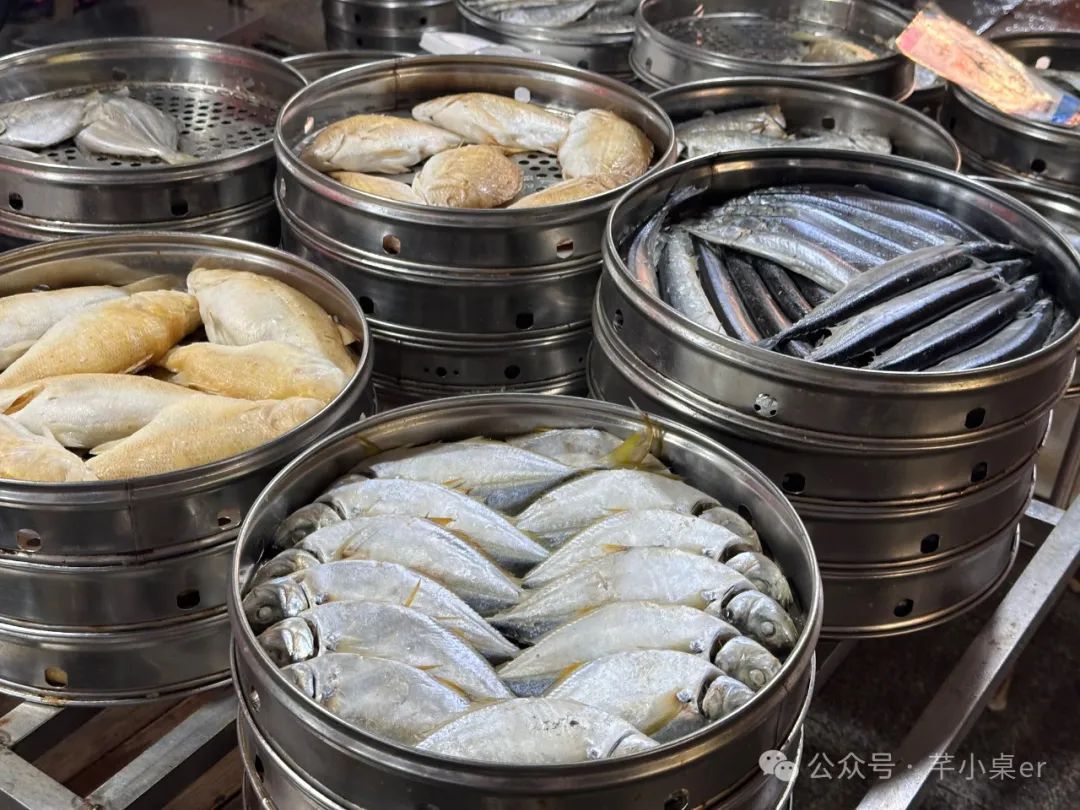 我站在擺列整齊的魚飯(至於魚飯是啥看之前一篇寫潮汕的裏面有講)前,像一個解不開幾何題又夢想當數學家的笨學生,一直在感慨:
