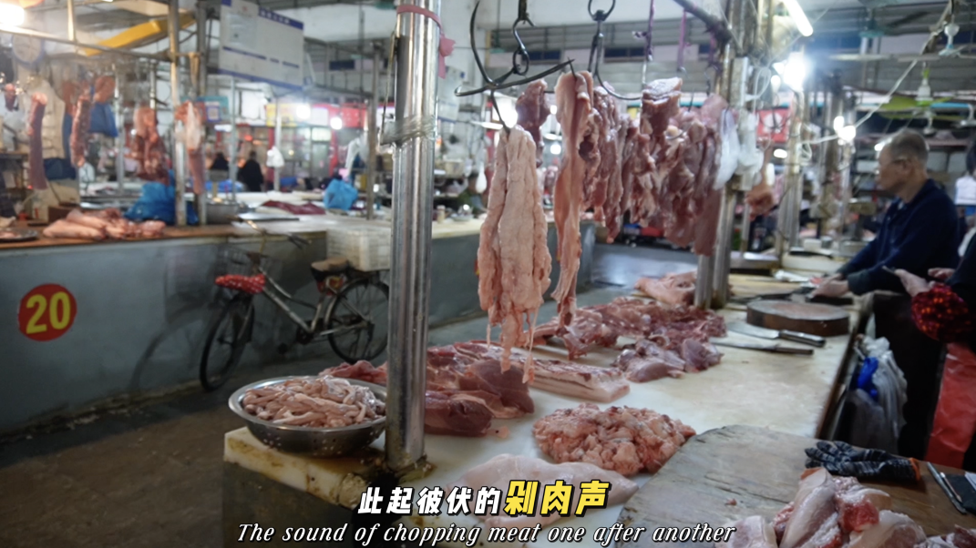 但這裏沒有,我認真替大家聞了,整個肉類區沒有污穢的氣味,只有叮叮噹噹剁肉的聲音,知道你們看不到,我放在視頻裏了,一定要去聽!