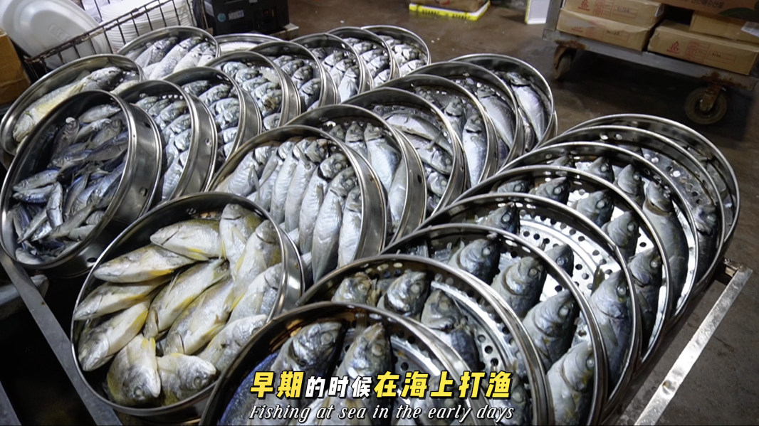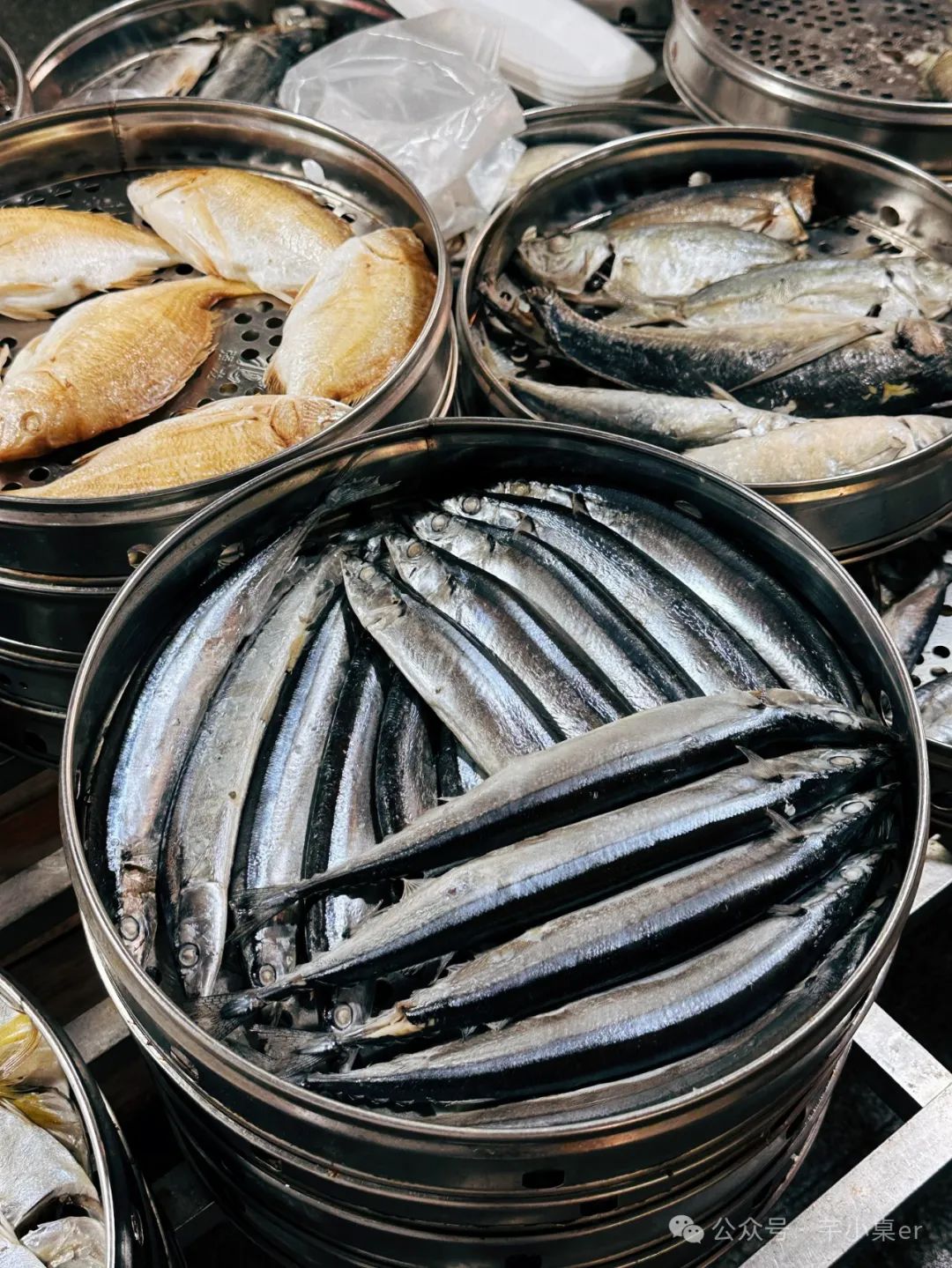 哪怕知道是漁民順手的擺放,但圓圓的竹盤裏人字形分佈的魚身,在昏暗的燈光下泛着清冷的霜氣,居然充滿了現代建築的美感。