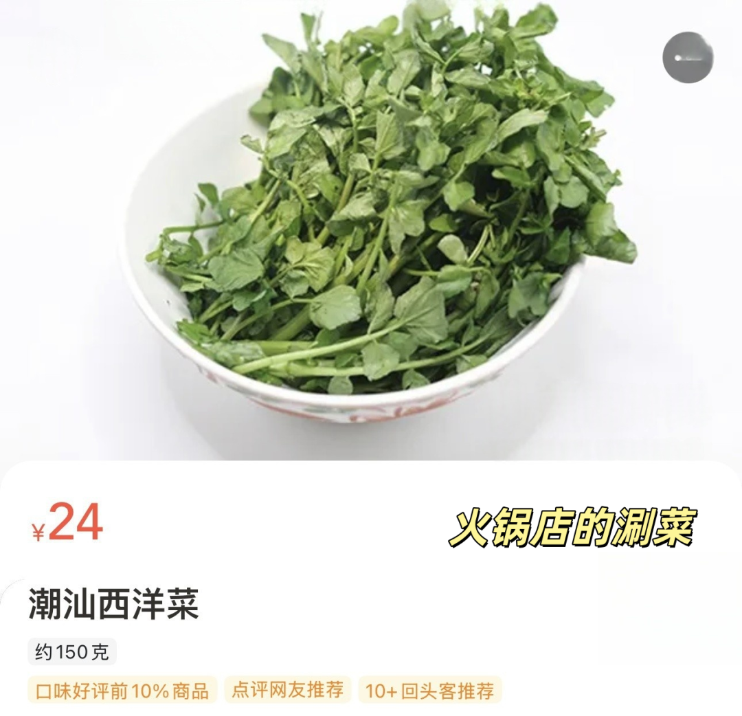 我之所以會專門跟老闆確認下名字,是因為我深切的記得,在北京的潮汕火鍋店裏,大約十幾根一紮的西洋菜涮菜,24元。