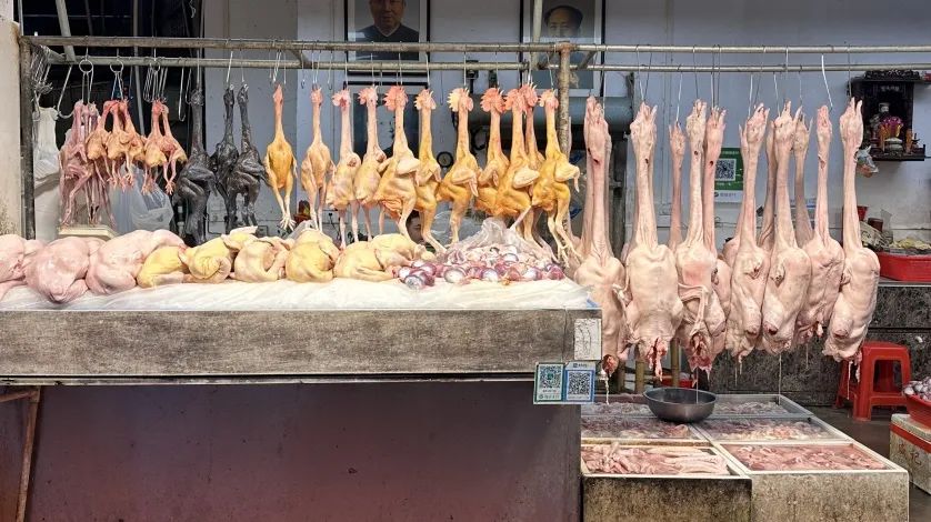 哦,楓春市場不僅有屍骨未寒就高高掛起的雞,還有禽類全家,整整齊齊。