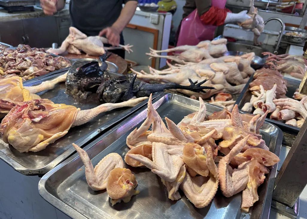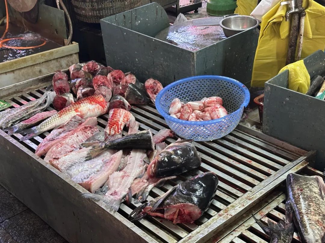 我説這裏乾淨,指的不是道路寬敞、窗明几淨的那種乾淨,而是偌大一個肉類區,牛羊豬雞鴨鵝們都在一起被切割、售賣,我竟然聞不到一點難聞的氣息。