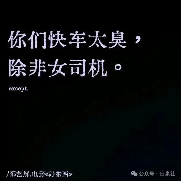 像《好東西》中的那句台詞“快車太臭,除非女司機”所體現的邏輯那樣,這種連打車也持有性別敍事的羣體其實有一個很明確的,但自己可能不願意承認的訴求,**就是對購買來的社會服務的要求很精緻,標準很高。**只不過在當下流行的某種性別敍事中,這種精緻和高標準可以和“美好的性別品質”掛勾。並非是因為這個司機是女性而被無條件認可,而是性別敍事假設“因為她是女性,所以她可以乾淨精緻服務好”,所以才被認可。