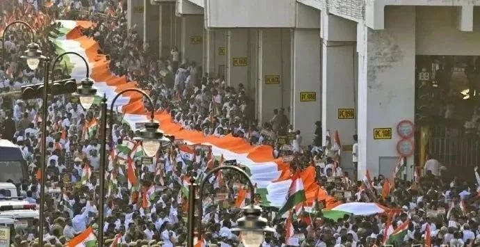 新德里數萬人參加了“國旗朝聖”遊行,載歌載舞歡呼對巴基斯坦的“歷史性勝利”。