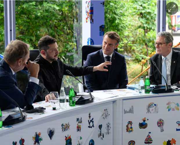 ▲週五,波蘭總統圖斯克、烏克蘭總統澤連斯基、法國總統馬克龍和英國首相斯塔默出席在阿爾巴尼亞地拉那舉行的歐洲政治共同體峯會期間舉行的烏克蘭安全會議。(圖源:美聯社)