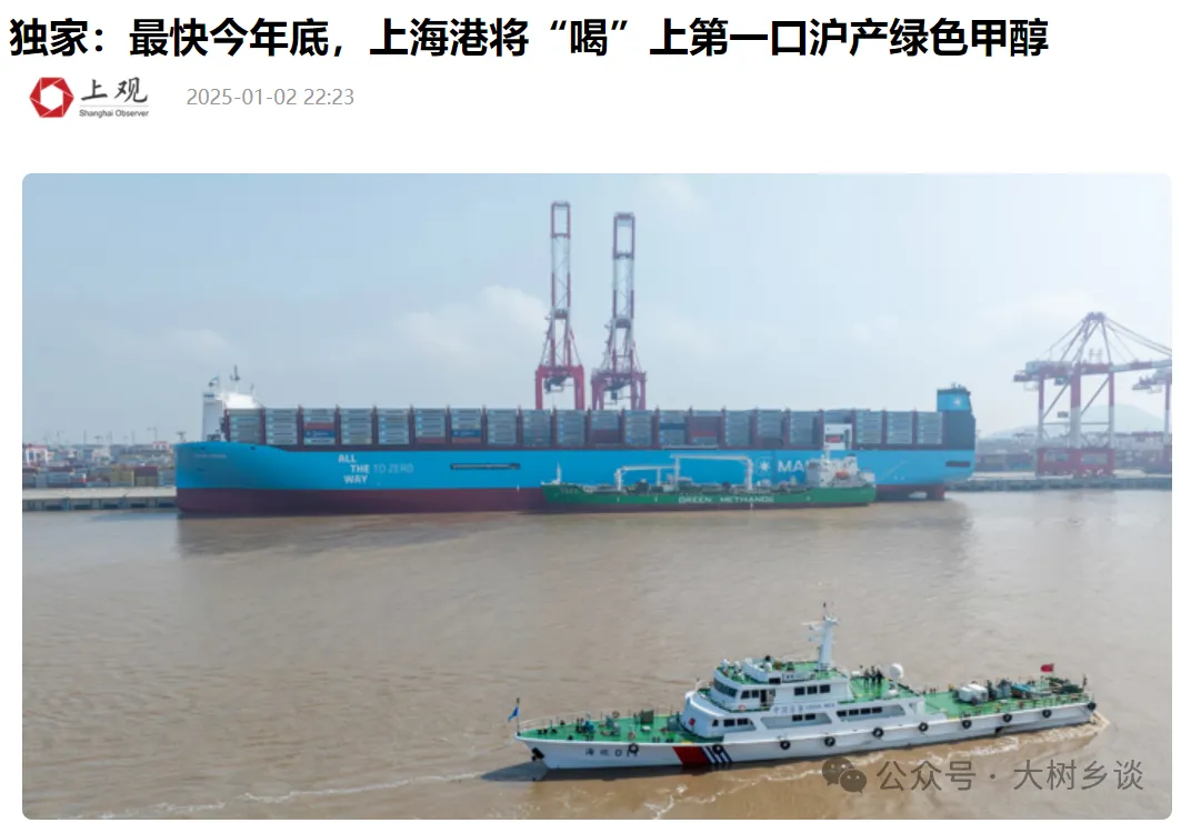 甚至2025年1月,上海還開始建造全球第一個10萬噸級生物質綠色甲醇項目,用上海城市的濕垃圾、畜禽糞污等生產甲醇。