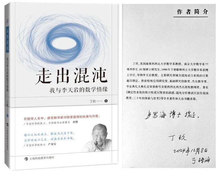 不過幸運的是,2024 年年底,我又回了一趟國。在那趟回國中,我首次參加了《數學文化》的編委會議,並且首次見到了編委之一的丁玖教授。被 “貪念” 慫恿着,多數時候怯於交際的我厚顏上前,主動 “搭訕” 索書,這才終於如願以償——後來得知,我厚顏得正是時候,因為丁玖教授用來贈送友朋的《走出混沌: 我與李天巖的數學情緣》當時已只剩下最後一本!