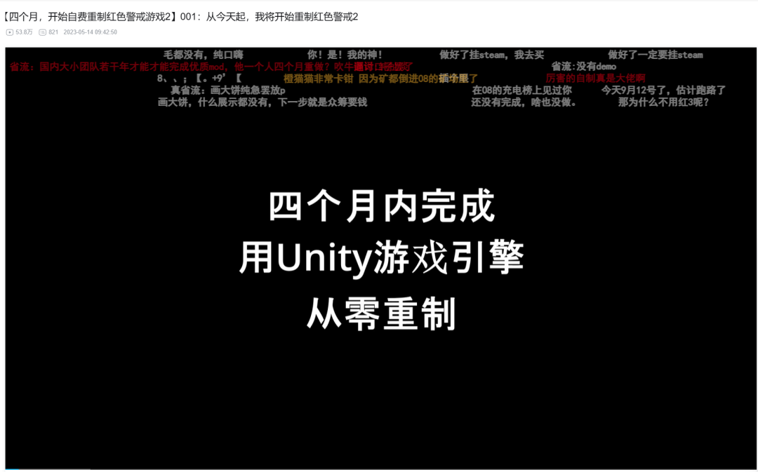 還有部分想要搞個大新聞的創作者。比如一位UP於2023年月發佈視頻《001:從今天起,我將開始重製紅色警戒2》,宣稱將在四個月內,用Unity從零重製3D紅警2。
