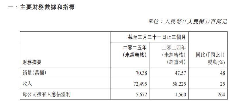5月15日,吉利汽車(0175.HK)公佈了2025年第一季度的財務數據。