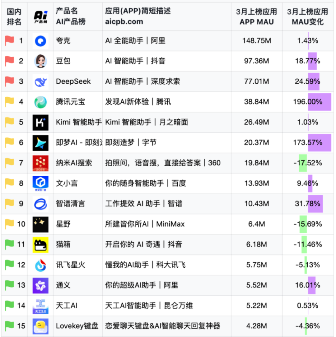 根據“AI產品榜”發佈的數據,3月份“天工AI”的MAU僅有522萬,幾乎是夸克、豆包、DeepSeek等龍頭產品的零頭。