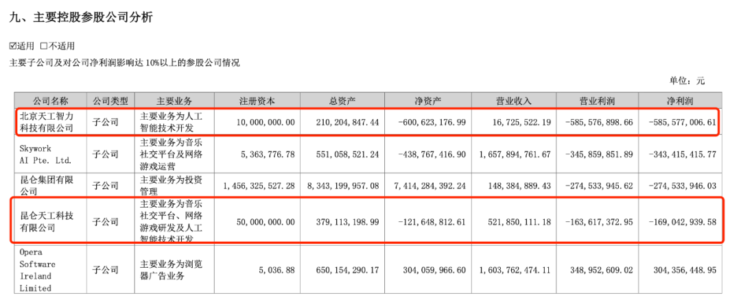 2024年,崑崙萬維做AI研發的子公司,都處於大額虧損狀態。