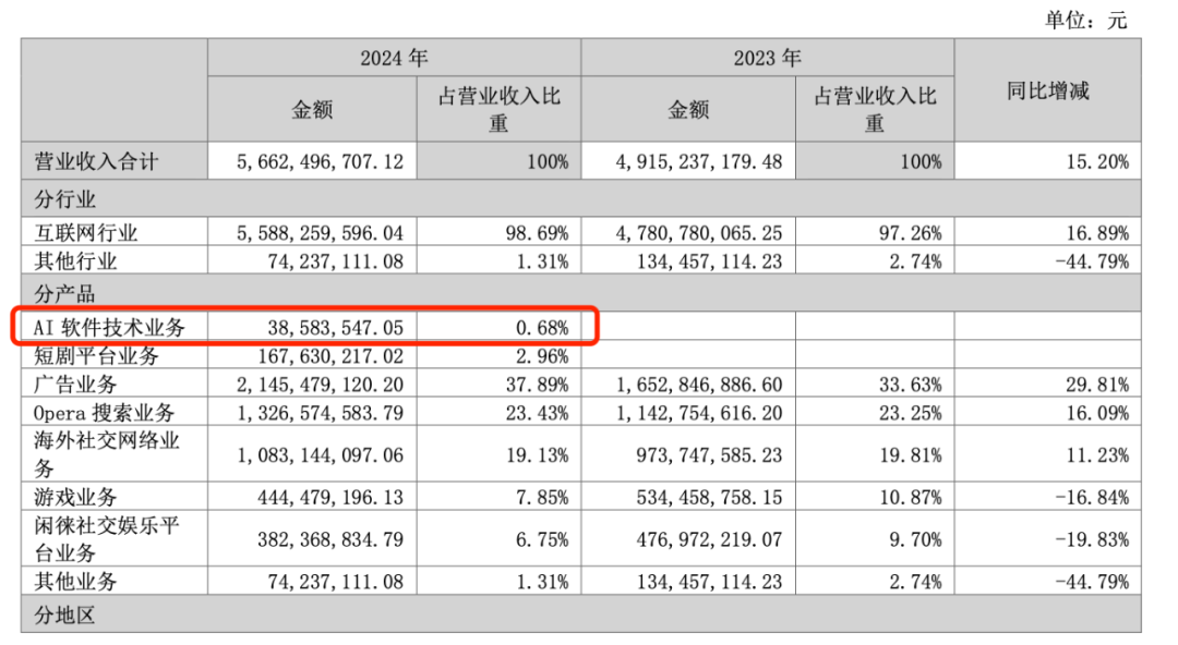 2024年財報裏,崑崙萬維也説了,公司的收入還是主要來自傳統的Opera搜索、廣告業務、海外社交網絡和遊戲等業務。