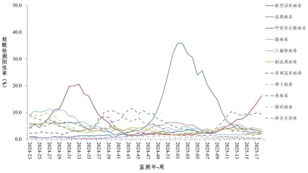 記者注意到,本輪疫情流行水平尚未達到去年峯值(21.1%)。中國疾控中心此前預計,4至5月的疫情波動不會超過2024年夏季,引發規模性疫情的可能性較低。