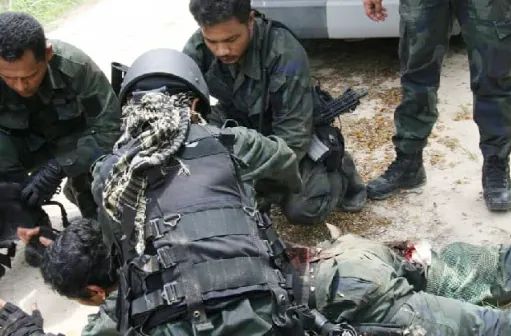 更加要命的是,由於地方特警部隊的情報工作嚴重缺失,缺乏應急預案,地形不熟,沒有接應,導致他們即使是撤退作戰,也無法落實到位,很快就被以逸待勞的蘇祿軍一方趕進了死衚衕裏,甚至受到了對方兇殘冷兵器的砍殺,一些陣亡警察的屍體,直接被砍頭辱屍。