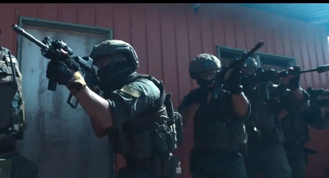 為什麼説該片的質感處於中上水平,但是離“優秀”還稍微有些距離呢?因為它在隊員的一些裝備細節方面還是比較單調的,比如説:電影中所有出現隊員佩戴頭盔的場面裏,他們的頭盔都基本上是隻加了一層布的“裸盔”狀態,而沒有使用夜視鏡配套的支架、敵我識別的信號燈、用於閲讀的頭燈、以及支持夜視鏡長期作戰的電池盒等小型但很增加戰鬥力的部件。