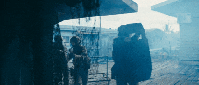 ▲電影反派們手持加利爾突擊步槍開火的場面