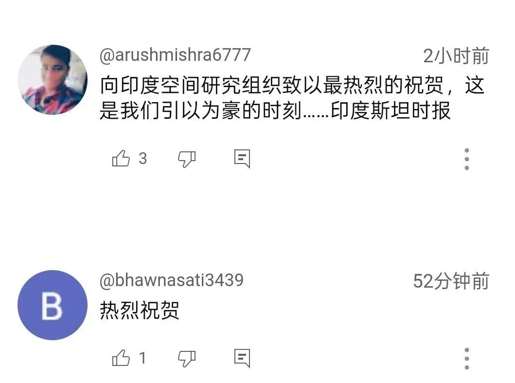 評論區裏到處是祝賀印度航天的聲音,自豪感爆棚。