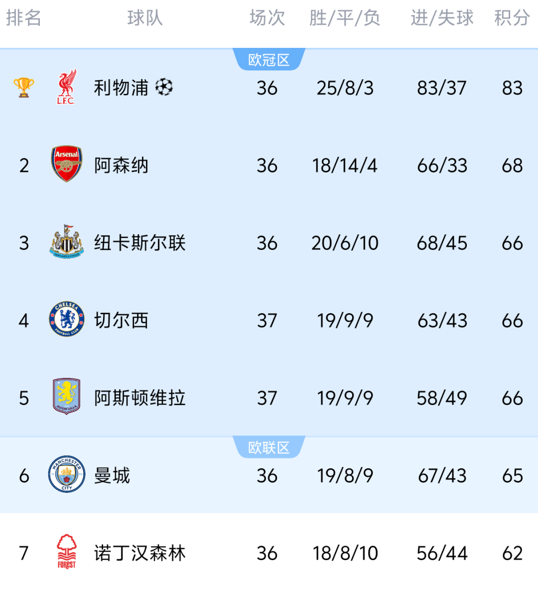 隨着本賽季歐洲五大聯賽走向尾聲,下賽季歐冠正賽資格的歸屬也逐漸浮出水面。但在最受關注的英超聯賽中,截至發稿,只有排名第一的利物浦因斷層式的領先,確定獲得下賽季的歐冠資格。