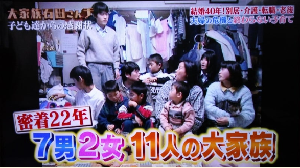 從1997年開始,日本電視台就跟蹤採訪拍攝了茨城縣一家有着11口人的大家庭。父親石田晃是一名上班族,在知名外企化妝品公司上班。
