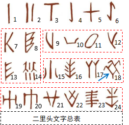 通過比對破解,二里頭文字總表20近似“巾”字造型,其實就是“巾”字。