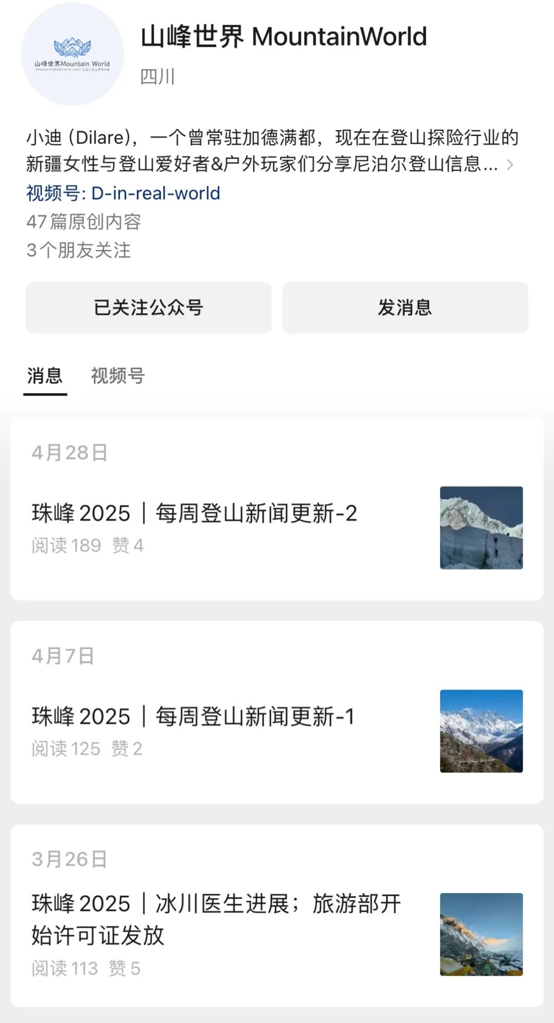 目前,小迪在個人公眾平台“山峯世界”上創作併發布的珠峯登山季資訊系列文章,在國內取得了良好傳播效果,既提升了原公司的品牌認知度,也有效推廣了尼泊爾旅遊文化。