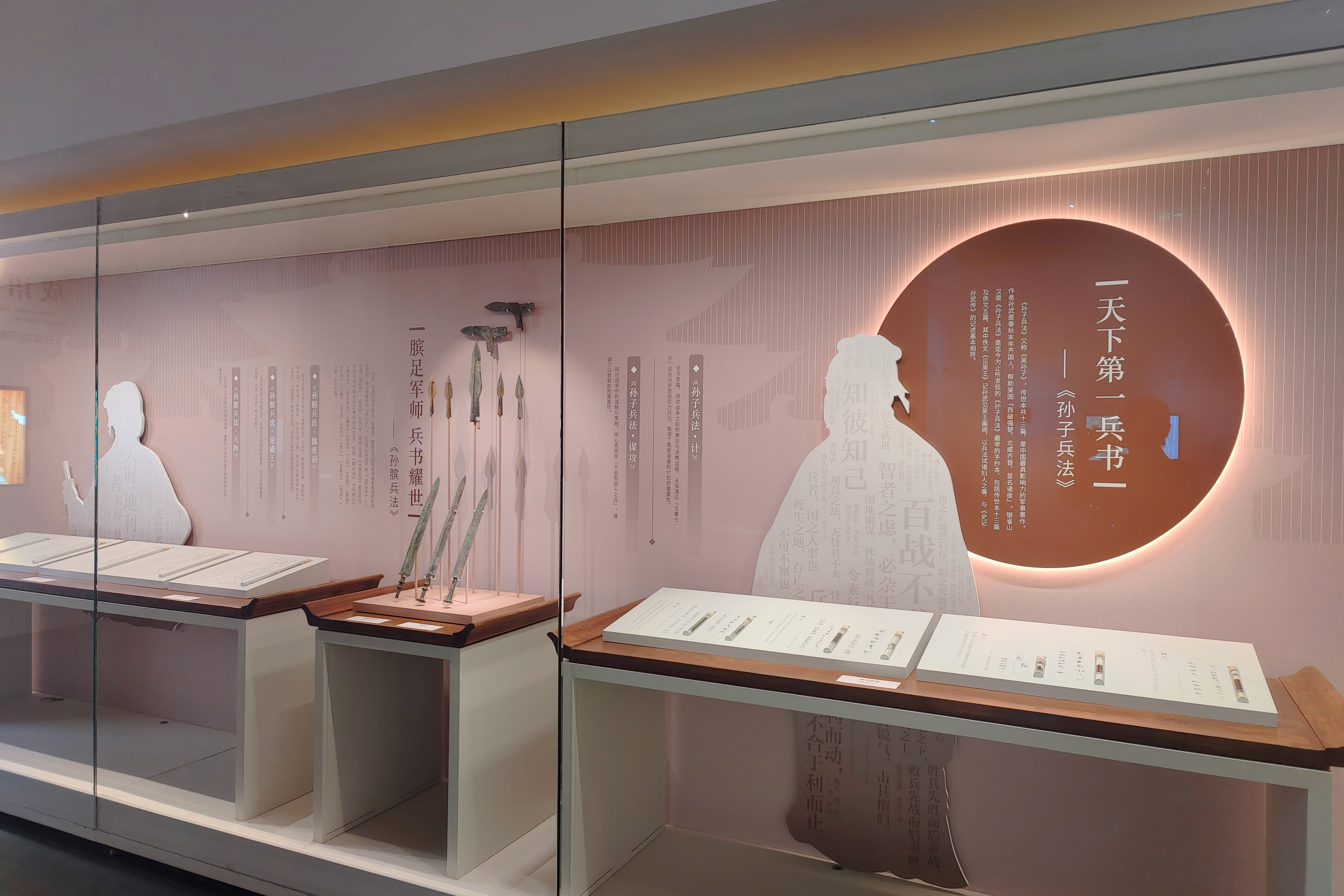 山東省博物館的《銀雀山漢簡文化展》上陳列的《孫子兵法》和《孫臏兵法》漢簡,這兩部著名的兵書誕生於中國春秋戰國時期百家爭鳴之際,同期也是印度佛教、耆那教、順世論等哲學宗教思想百花齊放之時 | 圖源:山東省博物館