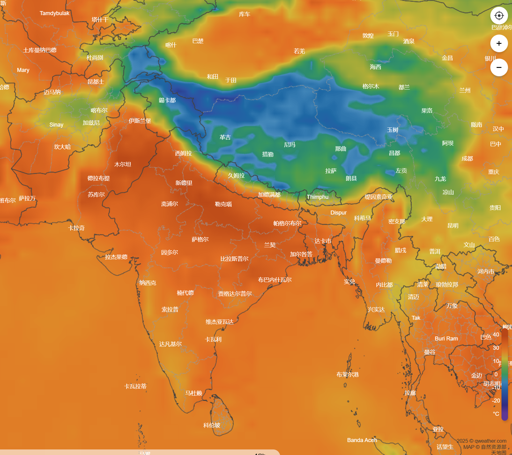 2025年5月16日的印度即時氣温圖 | 圖源:和風天氣地圖