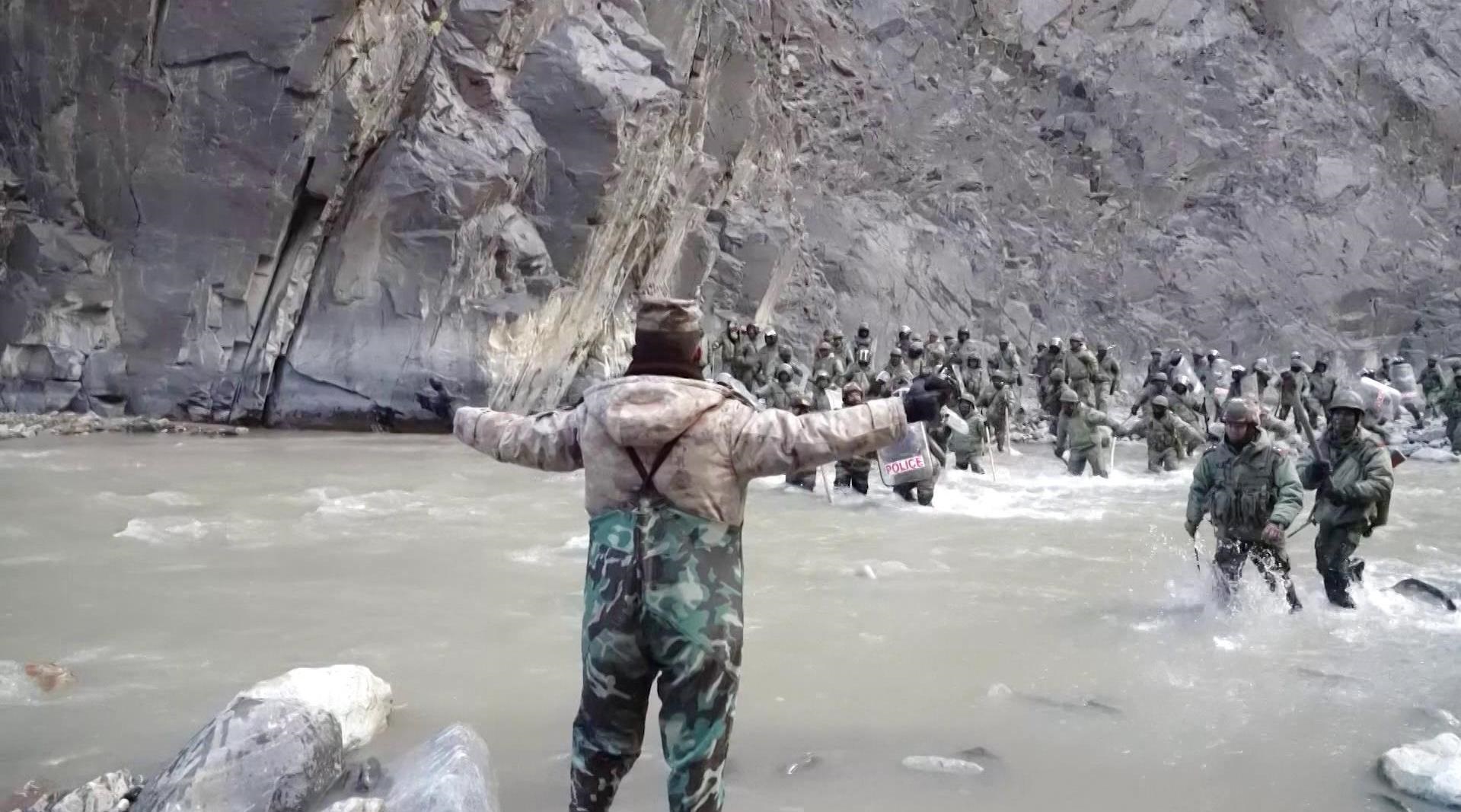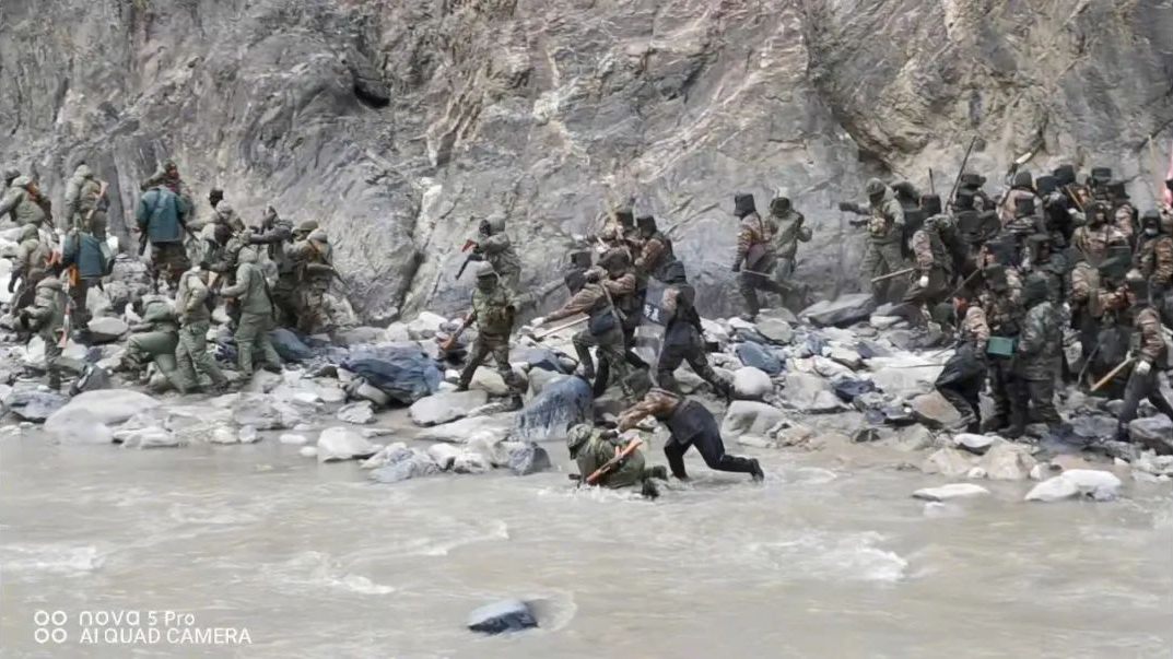 加勒萬河谷中印軍狼狽潰逃的這張照片堪為經典 | 圖源:網絡