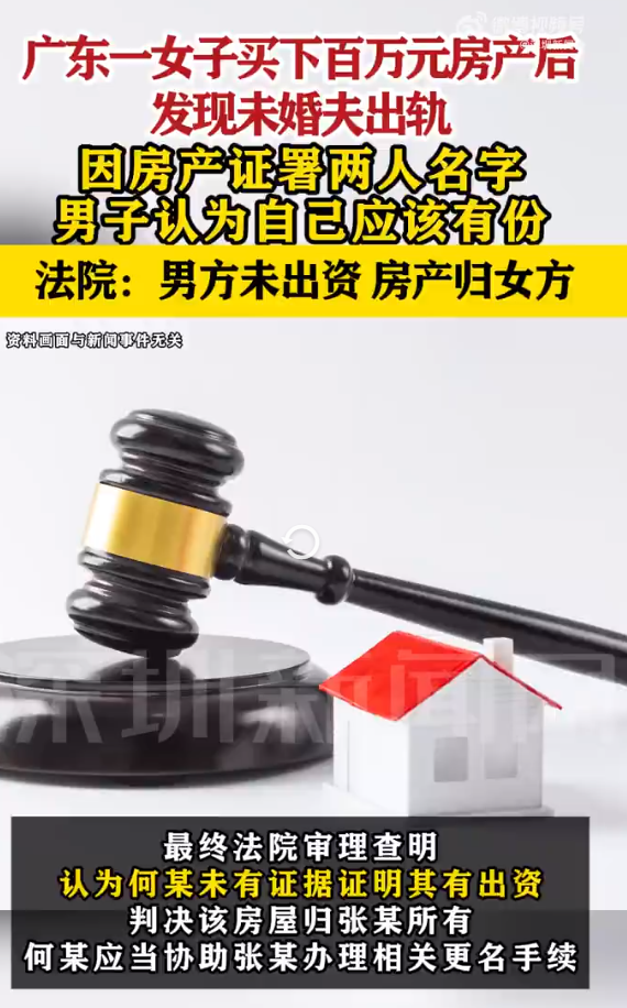 女子買下百萬房產後發現未婚夫出軌,法院:未婚妻全款出資歸女方,如何看待這一判決?_風聞
