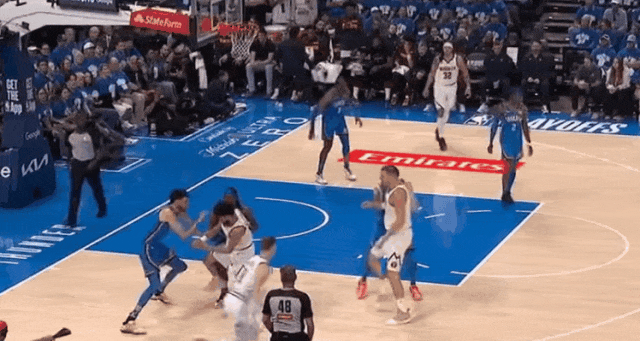 ——約基奇上,被卡魯索繞前擒抱、雷霆快速縮放,掘金無力懲罰雷霆。