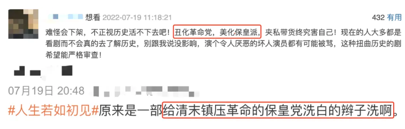 就説當時《人生若如初見》上線時,遇到的最大輿論風暴是,不少網友指出該劇男主樑鄉原型為清末保皇黨。