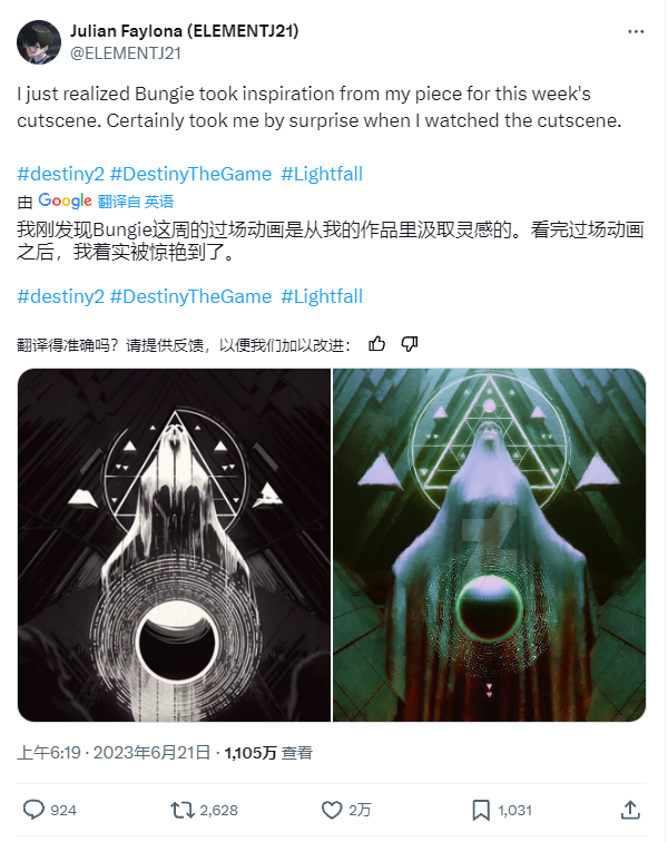 包括2021年《命運2:邪姬魅影》資料片的某部預告片、2023年《命運2:光隕之秋》資料片的其中一部過場動畫,均涉嫌未經授權直接挪用粉絲的二創藝術圖。